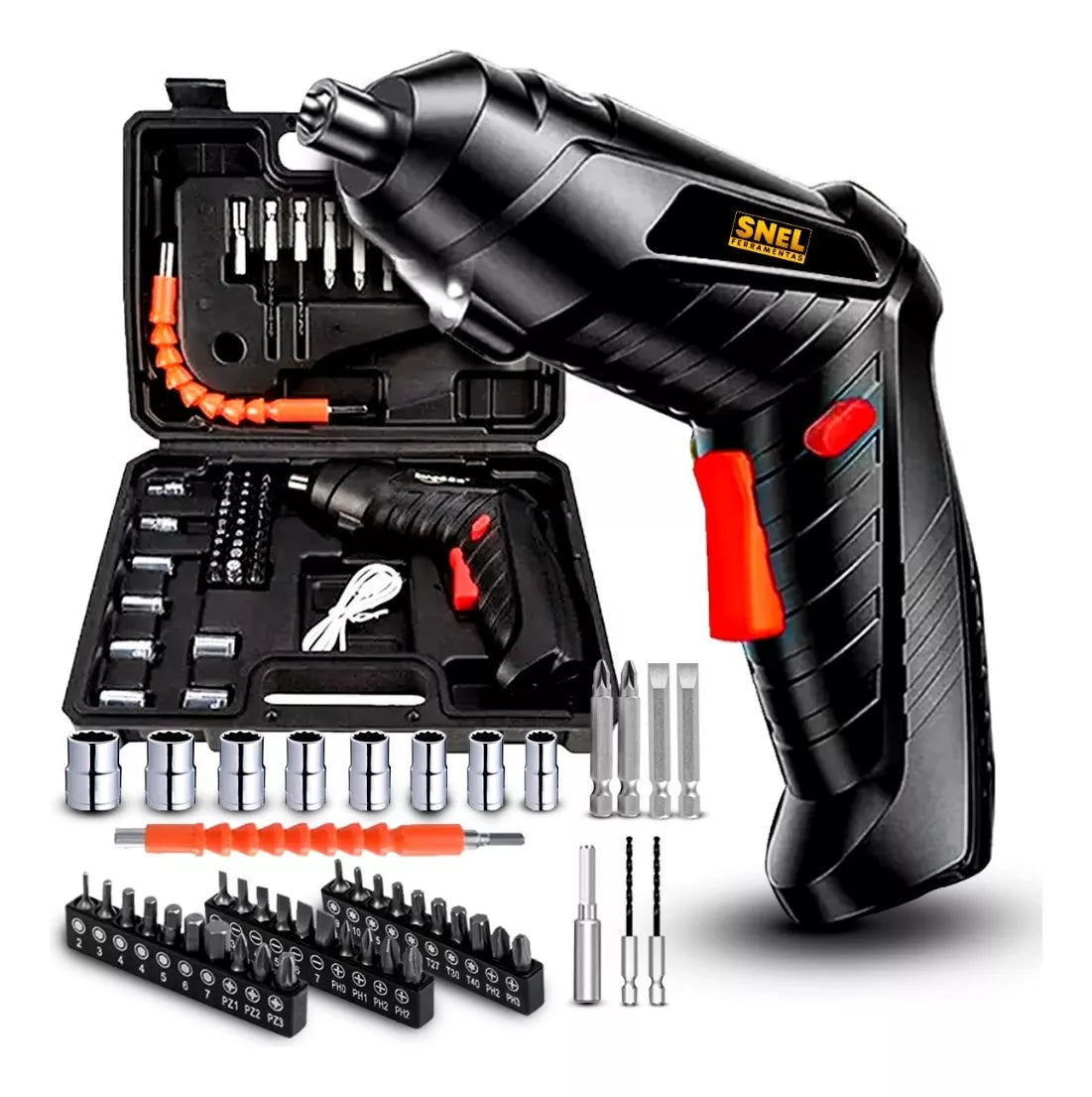 Kit Parafusadeira Furadeira 48 Pçs À Bateria Carregador USB Dupla Posição Snel Ferramentas